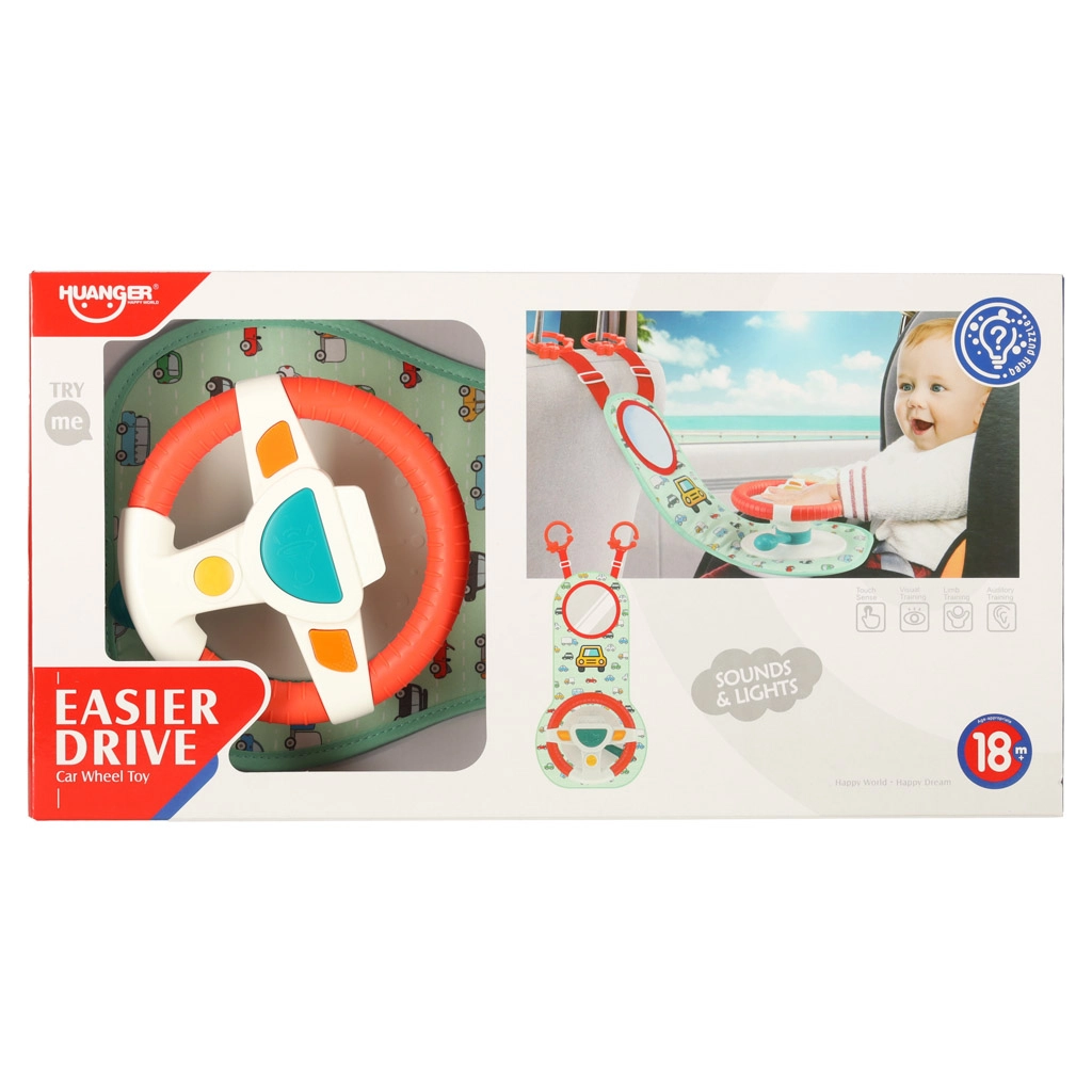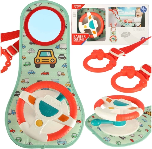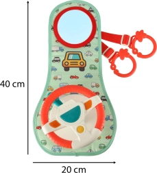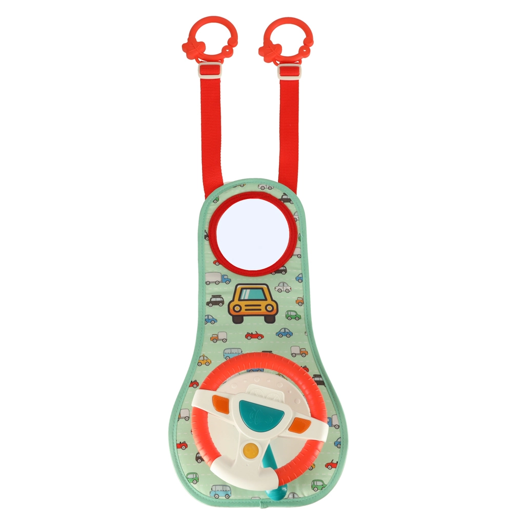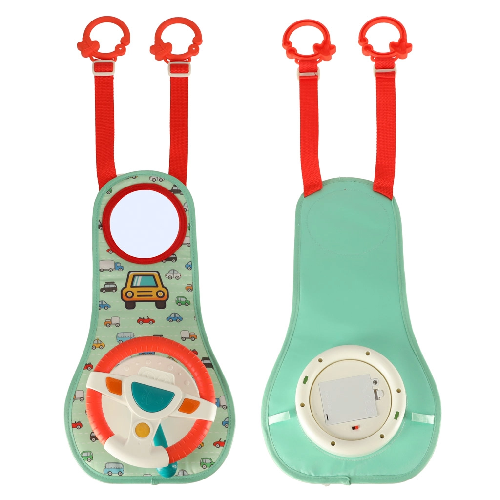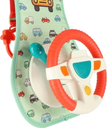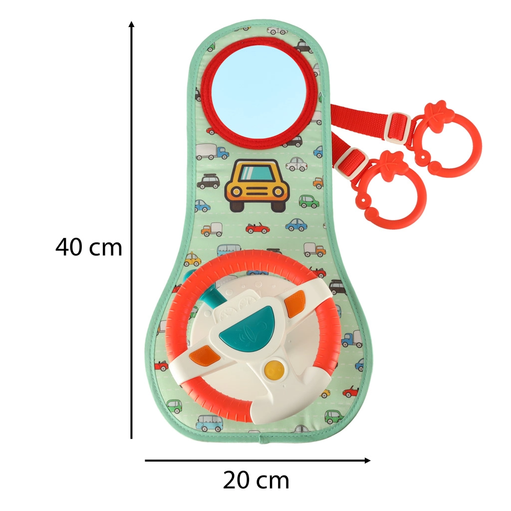 Šis interaktyvus automobilio vairas, sukurtas taip, kad pramogautų jūsų vaiką kelionės metu, turi spalvotą skydelį su vairu ir saugų veidrodėlį. Jame yra keturi mygtukai ir sensorinė svirtelė, kurie skleidžia garsus ir spalvotas šviesas, žadina vaiko vaizduotę ir jutiminius pojūčius.