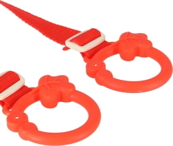 Žaislas lengvai pritvirtinamas prie sėdynės nugarėlės naudojant plastikinius žiedus, kurie užtikrina stabilumą ir saugumą.