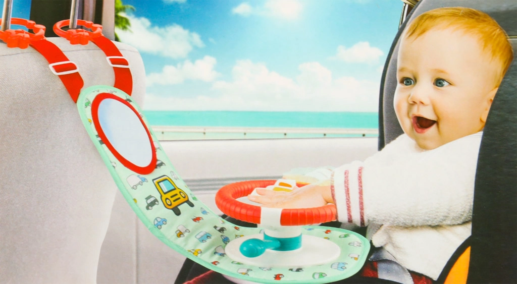 Saugumas yra mūsų prioritetas, todėl žaislas pagamintas itin kruopščiai, be aštrių briaunų ir nuimamų dalių. Jį paprasta pritvirtinti prie sėdynės atlošo galvos atramos naudojant reguliuojamus plastikinius žiedus.