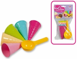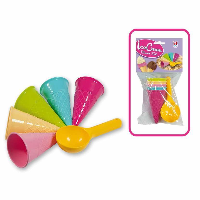 Androni smėlio formelės Ledai yra idealios mažiesiems smėlio ir ledų mylėtojams. Šis šešių dalių rinkinys siūlo penkis kankorėžius (vaflinius ragelius) ir patogų samtelį, leidžiantį vaikams kurti savo smėlinius ledų skanumynus.