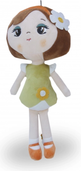 Pūkuota lėlė Roma sužavi švelnia išvaizda – rudi plaukai su gėlės papuošimu, alyvuogių spalvos suknelė su žiedeliu ir oranžiniai batukai. Švelnus, glotnus ir blizgus pliušas malonus liesti ir tiesiog kviečia apkabinti. Dėl lengvos konstrukcijos vaikai ją lengvai nešasi bet kur – į lovytę, į kelionę ar į svečius.
