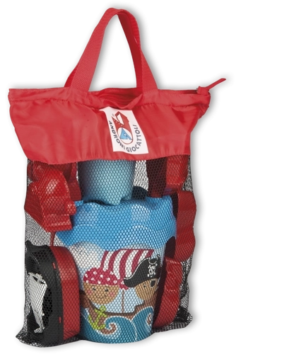 Šis ANDRONI piratų smėlio rinkinys pradžiugins tiek mažus nuotykių ieškotojus, tiek jų tėvus. Viskas tvarkingai sudėta į patogų kelioninį tinklinį krepšį, kurį lengvai pasiimsite ir atostogoms, ir į žaidimų aikštelę. Dėl dėmesio saugumui ir kokybei atskiros dalys atlaiko ir intensyvesnį naudojimą, o statant pilis bei kuriant piratų nuotykius skatina vaizduotę.