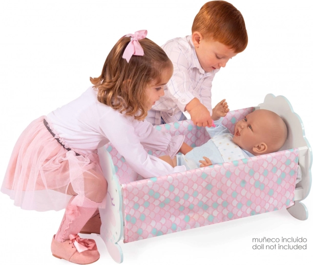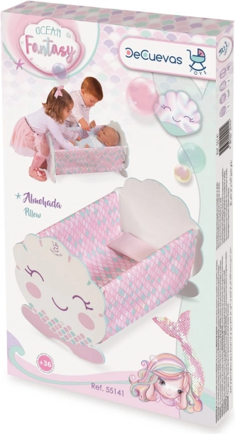 Žavus medinis lėlyčių lopšys iš kolekcijos OCEAN FANTASY sužavi švelniomis pastelinėmis spalvomis ir mažos jūros fėjos motyvu. Siūlo kokybišką atlikimą, stabilią konstrukciją ir ispanišką dizainą. Komplekte yra rožinė pagalvėlė, kuri suteiks lėlytei dar daugiau jaukumo. Puikus aksesuaras mergaičių kambariui, skirtas kūrybiškam žaidimui ir lėlyčių priežiūrai.