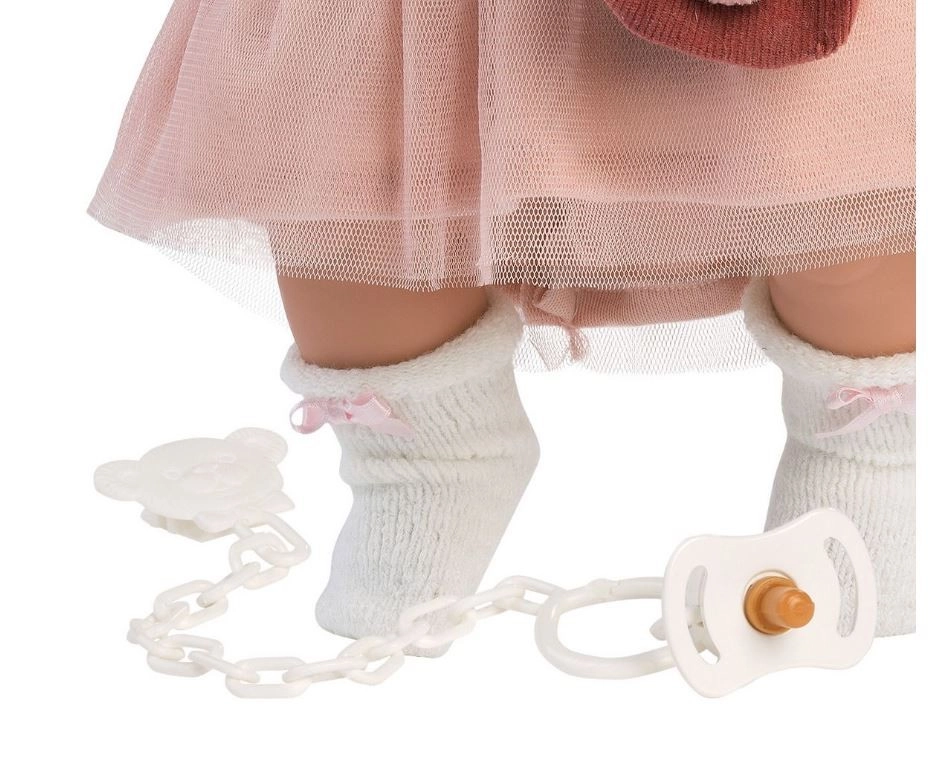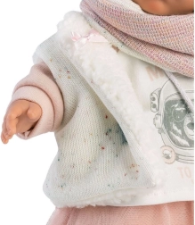 Llorens manufaktūros lėlytė – tai kokybiško ir saugaus žaidimo garantija. Ji pagaminta su didžiausiu preciziškumu ir naudojant tik pripažintų prekės ženklų audinius. Julija verkia ir sako „mama“ bei „tėtis“, kai jai išimate čiulptuką. Jos nuostabi išvaizda papildyta stilingais drabužiais: dvispalvis džemperis su spauda, tiulinė suknelė, kailinė liemenė, baltos kojinaitės su kaspinėliais ir rožinis šalikėlis – tobulas derinys, užtikrinantis valandas smagaus žaidimo.