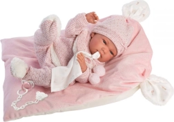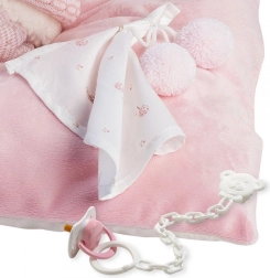 Lėlė aprengta rožiniu megztu deriniu su kepuryte ir batukais, kad žaidimo metu atrodytų dar realesnė.