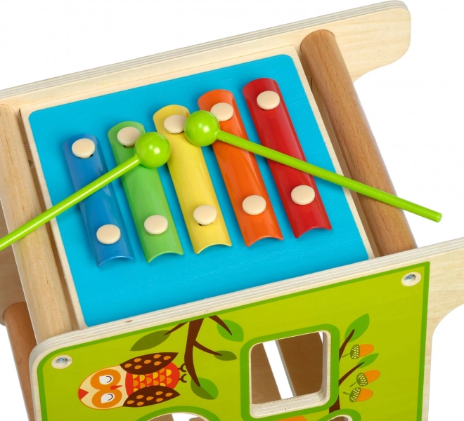 Spalvotas ksilofonas su dviem plaktukais lavina ritmą ir klausą. Vaikai mėgausis pirmosiomis melodijomis ir žaisminga garsine stimulacija.