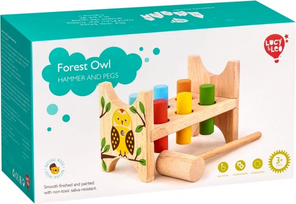 Linksmų ir patvarių medinių kaladėlių su pelėdos motyvu žaidimas iš Lucy & Leo lavina smulkiąją motoriką, rankos ir akies koordinaciją, o rinkinyje yra plaktukas ir spalvoti kaiščiai. Įkalus visus kaiščius, pakanka suoliuką apversti ir žaidimas gali tęstis iš naujo.