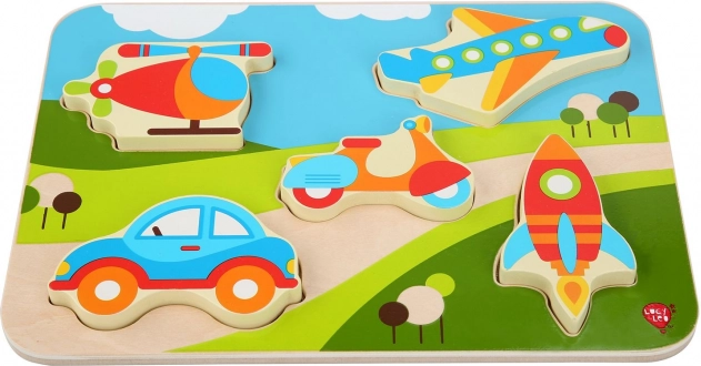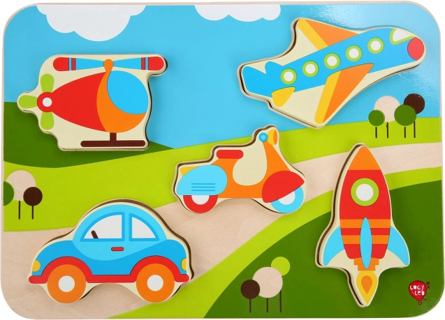 Atraskite linksmą medinę dėlionę su transporto priemonių motyvais, kuri lavina smulkiąją motoriką, akių–rankų koordinaciją ir figūrų atpažinimą. Didelės, spalvingos dalys vaikams patogiai laikosi rankoje ir lengvai įstatomos į tinkamas išpjovas. Puikus pirmosios dėlionės pasirinkimas mažiesiems automobilių, lėktuvų ir kitų transporto priemonių gerbėjams.