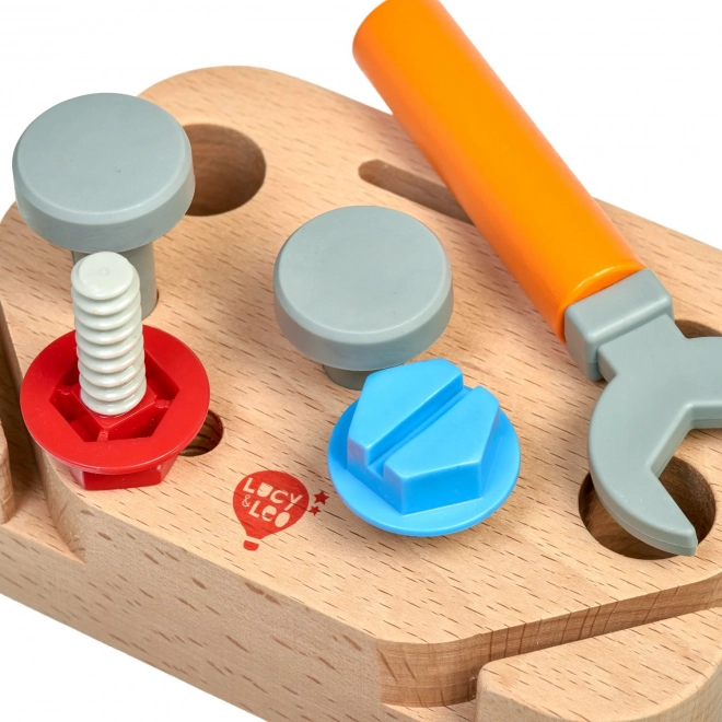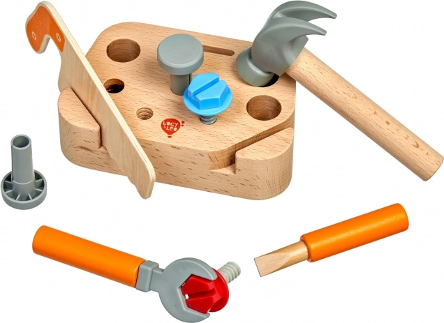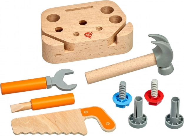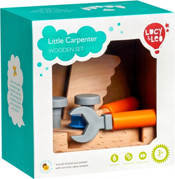 Atraskite kūrybišką amatų pasaulį su vaikišku Lucy & Leo „Mažasis dailidė“ įrankių rinkiniu. Šis kokybiškas medinis 9 dalių rinkinys su stovu apima pagrindinius įrankius – pjūklą, plaktuką, raktą ir atsuktuvą – papildytus varžtais ir vinimis. Žaislas pagamintas iš saugaus medžio ir plastiko su lygiai nušlifuotu paviršiumi, puikiai lavina smulkiąją motoriką, akių–rankų koordinaciją ir kūrybinį mąstymą.