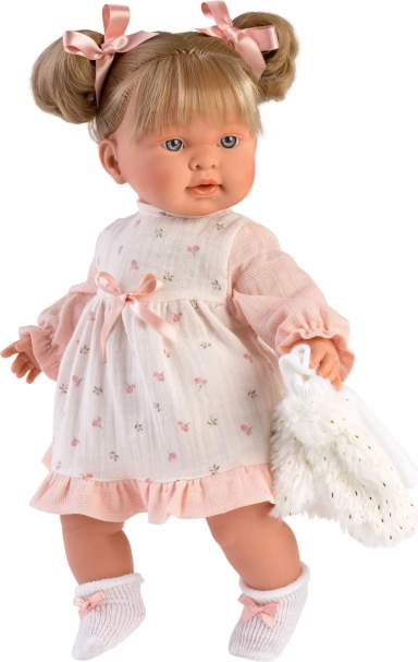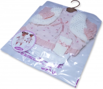 Stilingas 4 dalių drabužėlių rinkinys 42 cm lėlei iš LLORENS pradžiugins švelniomis rožinėmis suknelėmis, minkšta liemenėle ir kelnaitėmis su pakabėliu. Pagaminta Ispanijoje, puikiai tinka kasdieniam žaidimui ir šventinėms akimirkoms. Tinka nuo 3 metų.