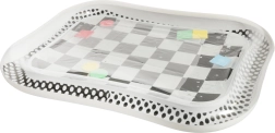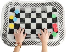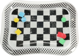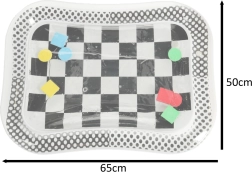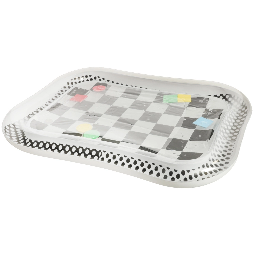 Atraskite kontrastinį vandens kilimėlį, kuris ne tik sudomina jūsų vaiką, bet ir padeda lavinti jo sensorinę ir motorinę raidą. Šis kilimėlis su juodai baltu šachmatiniu motyvu turi plūduriuojančias spalvotas geometrines figūras, kurios juda vaikui palietus.