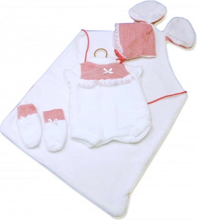 Rinkinį sudaro 3 dalių komplektas ir dekoratyvinė paklodė su ausytėmis dar didesniam malonumui rūpinantis lėle. Supakuota į plastikinį dėklą su plastikine arba kartonine pakaba – patogu laikyti ir dovanoti.