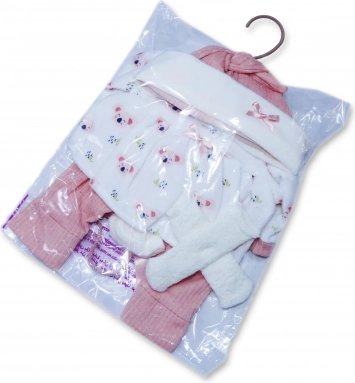• Rinkinio sudėtis: suknelė/komplektukas, kelnės, kepurėlė, kojinaitės, migdukas „hug me“