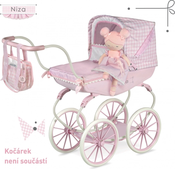 Mielutė plišinė lėlė Niza švelnios rožinės spalvos pradžiugins kiekvieną mažą baleriną. Ji lengvutė, minkšta liesti ir ideali glostymams bei kelionėms. Rinkinyje yra išmani 2 viename dėžutė, kuri virsta lopšeliu, tad vaikas gali žaisti iš karto. Lėlę galima skalbti 30 °C temperatūroje, ji išsiskiria kokybišku atlikimu ir subtiliu ispanišku dizainu.