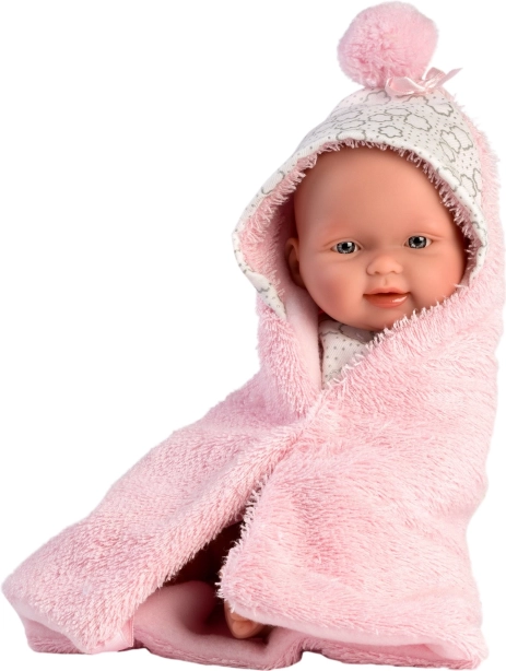 Šis dviejų dalių drabužėlis sukurtas specialiai 26 cm dydžio New Born kūdikio lėlei. Į komplektą įeina dvipusė antklodėlė su gobtuvu, kuri saugo lėlę ir suteikia jai tikro kūdikio išvaizdą.