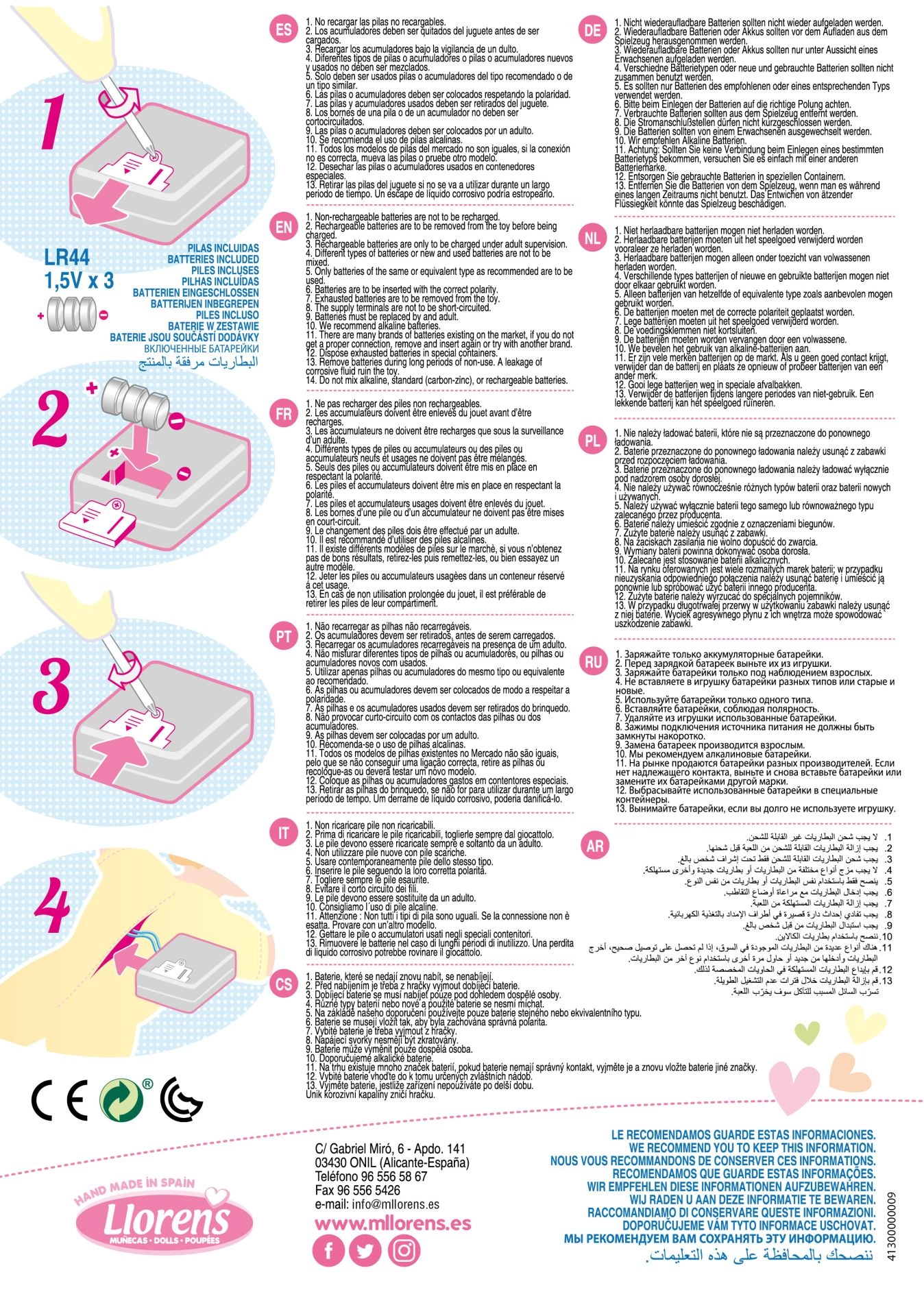 Visos Llorens lėlės gaminamos laikantis Europos saugos reikalavimų, užtikrinant saugų žaidimą.