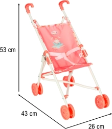 Lankstomas dizainas – vežimėlį galima lengvai sulankstyti iki kompaktiškų matmenų, kas palengvina jo nešiojimą ir laikymą. Mielas motyvas ant sėdynės ir saugos diržas suteikia žaidimui autentiškumo. Vežimėlis ne tik teikia džiaugsmą, bet ir lavina vaiko vaizduotę, empatiją ir socialinius įgūdžius.