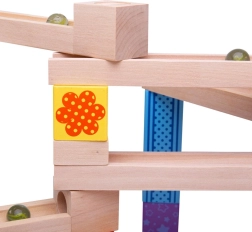 Trasa lavina erdvinį suvokimą, smulkiąją motoriką ir loginį mąstymą. Vaikus žavės, kaip rutuliukai švelniai rieda trasa, kurią jie patys sukūrė.