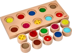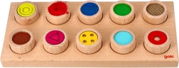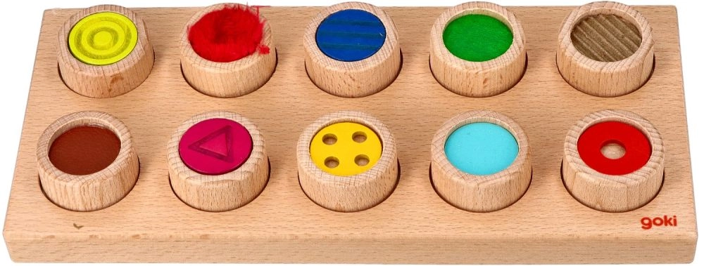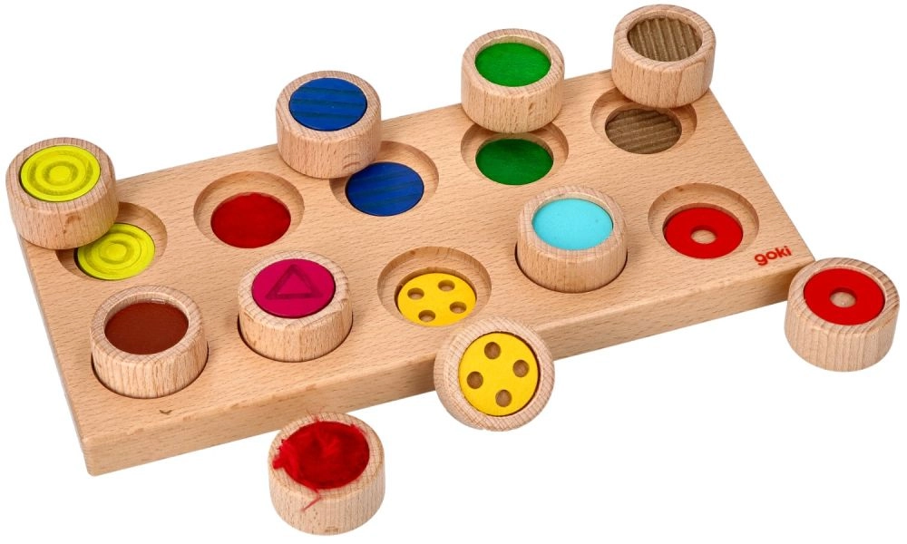 Šis kokybiškas medinis juslinis žaidimas jungia pramogą su mokymusi. Dešimt mini cilindriukų su skirtingais paviršiais vaikai apverčia žemyn paviršiumi, sumaišo ir vien lytėjimu nustato, kur jiems tiksliai skirta vieta. Puiki priemonė senzomotorikai, susikaupimui ir kantrybei lavinti, tinkama ir regos sutrikimų turintiems.