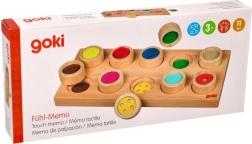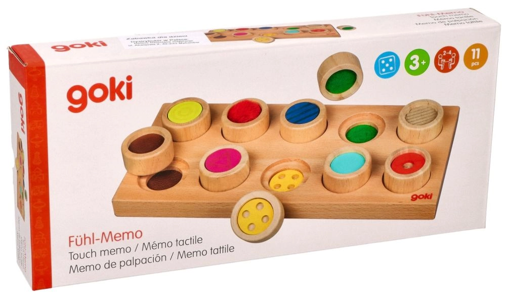Atraskite juslinį smagumą su mediniu GOKI žaidimu, kuris lavina smulkiąją motoriką, lytėjimo pojūtį ir paviršių bei spalvų atpažinimą. Vaikai liesdami ieško tinkamos angos kiekvienam skirtingos tekstūros cilindriukui – be žiūrėjimo, žaismingai ir saugiai.