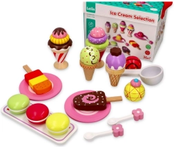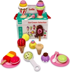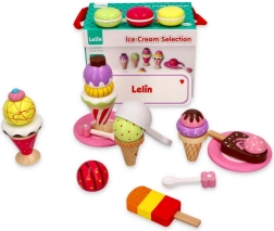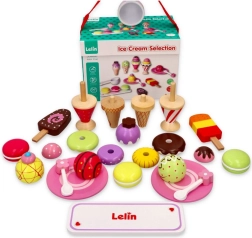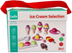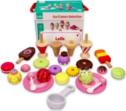 Su elegantišku mediniu Lelin ledų rinkiniu kiekvienas vaikas taps ledų meistru. Šiame rinkinyje yra 25 spalvotos dalys, jis idealiai tinka vaikams nuo 3 metų. Žaislai pagaminti iš lakuotos medienos ir supakuoti į tvirtą dėžutę su patogiu atvartu ir rankenėle, kad būtų lengva nešiotis.