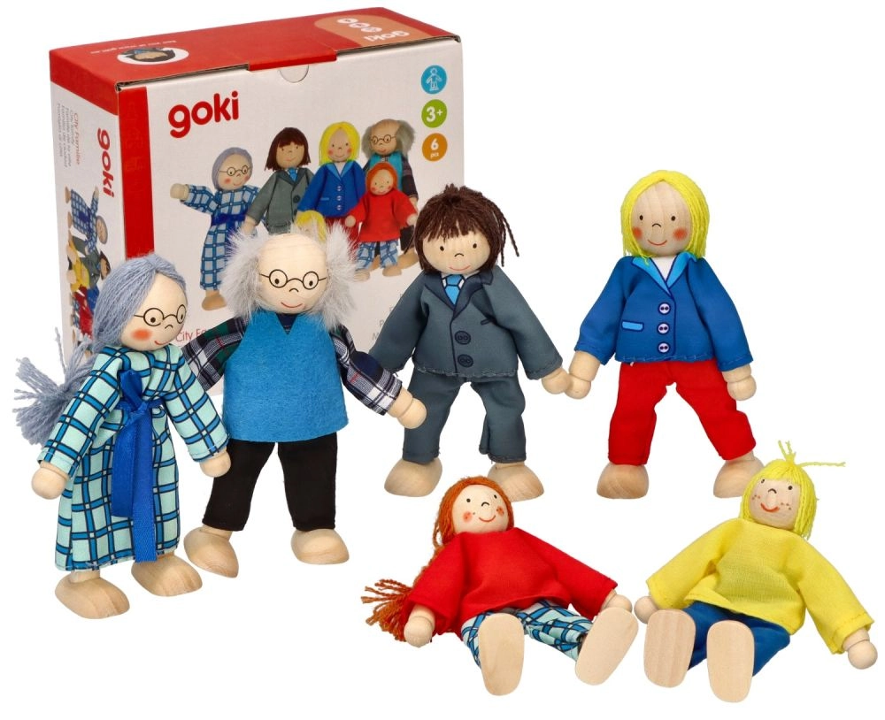 Rinkinys suderinamas su visais GOKI prekės ženklo lėlių nameliais. Natūralios medžiagos, kruopščiai parinkta mediena ir saugūs dažai pabrėžia ilgaamžiškumą ir tvarumo vertybes. 9–11 cm aukščio lėlytės patogiai telpa mažose vaikų rankose ir palengvina paprastą valdymą.
