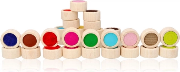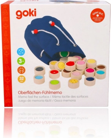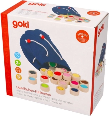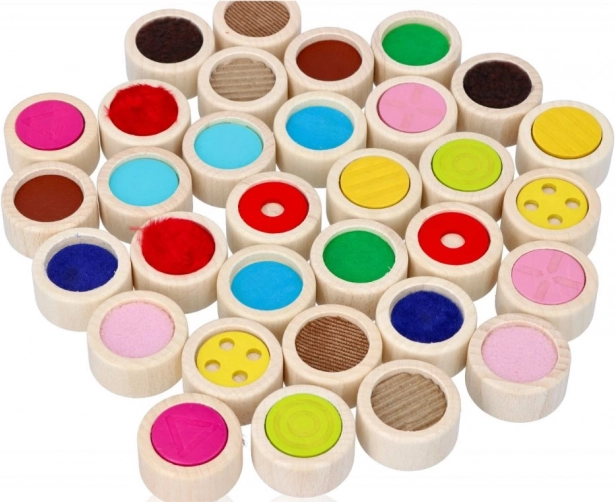 Medinis lytėjimo atminties žaidimas puikiai tinka lytėjimo ir jutiminių pojūčių stimuliacijai. Iš masyvinės medienos pagamintos cilindro formos kaladėlės turi 4 cm skersmenį ir 16 skirtingų paviršių. Žaidimą galima žaisti užsimerkus – kaip iššūkį rasti tą patį paviršių – arba kaip klasikinį atminties žaidimą, kai kaladėlės dedamos spalvota puse žemyn.