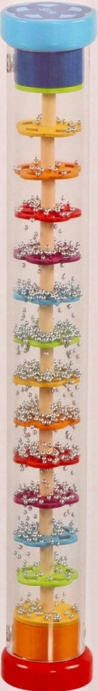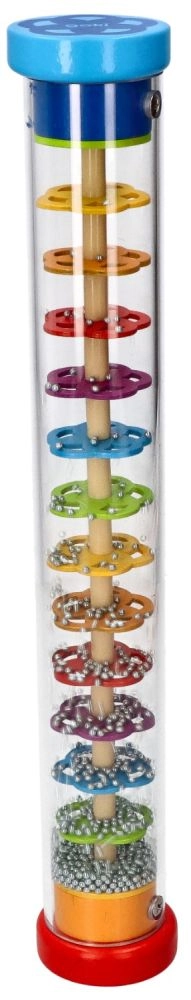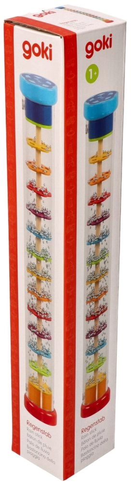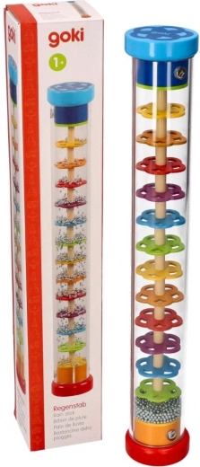 GOKI lietaus lazdelė – gražiai pagamintas sensorinis žaislas, kuris sukant permatomą vamzdelį imituoja krentančio lietaus garsą. Rutuliukai byrėdami per spalvotų žiedų sluoksnius kuria raminančius, natūralius garsus, žavinčius vaikus ir padedančius jiems susikaupti.