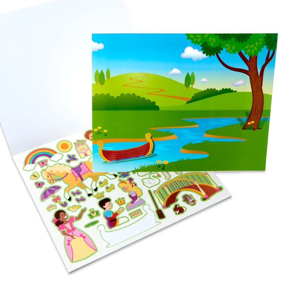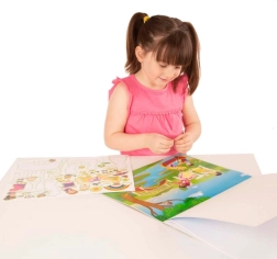 Lipdukus galima pakartotinai klijuoti ir perkelti, todėl vaikai lengvai keičia istoriją ir kuria naujas scenas.