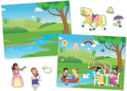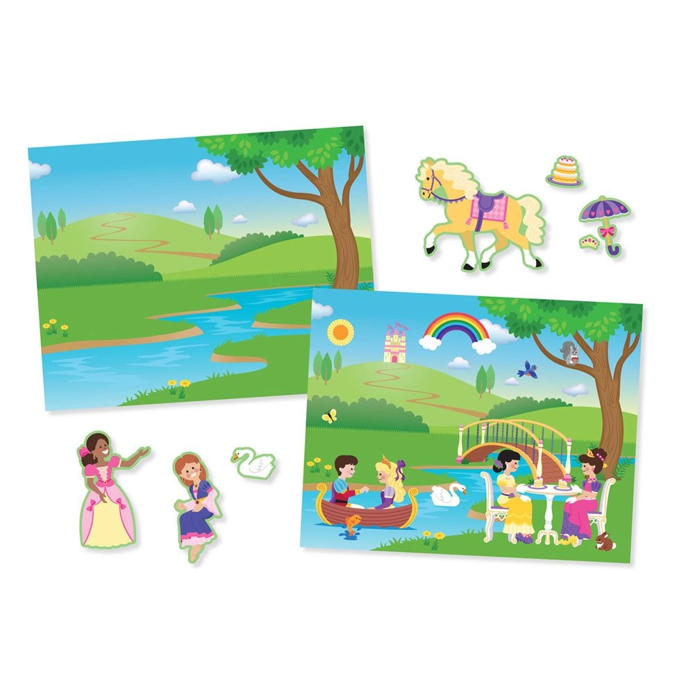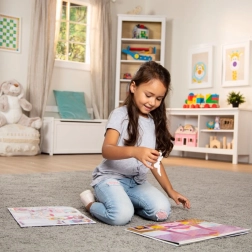 Šis kūrybinis rinkinys atveria žavingas princesių pasaulio, sosto salių ir karališkų menių scenas. Daugkartinio naudojimo lipdukus lengva perkelti, derinti ir sluoksniuoti, tad kiekvienas žaidimas dovanoja naują istoriją. Puikiai tinka namuose, kelionėse ir kaip dovana mažiesiems pasakų mylėtojams.