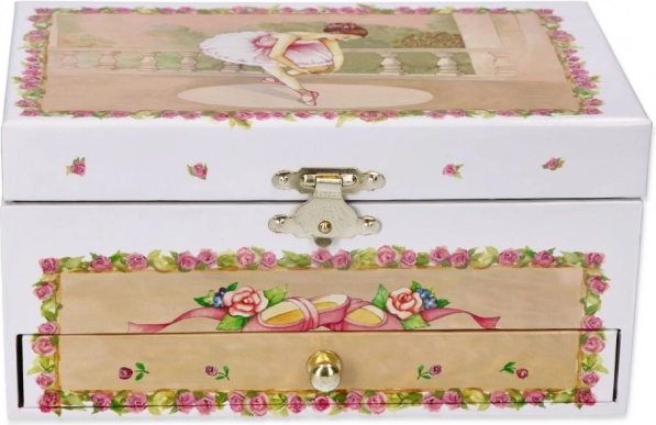 Elegantiška grojanti papuošalų dėžutė su stalčiuku ir miela balerina pradžiugins kiekvieną mažą puošeivą. Atidarius skamba „Gulbių ežero“ melodija, o balerina ima suktis prieš veidrodėlį. Dėžutė siūlo praktinę laikymo vietą smulkmenoms ir papuošalams ir yra puikus dekoratyvinis akcentas vaiko kambariui.