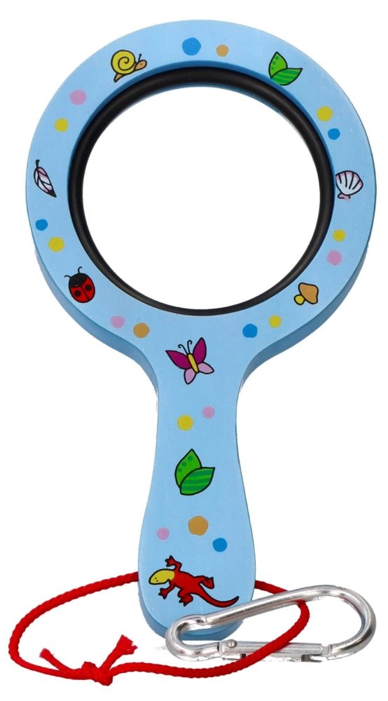Žaismingi raštai ir praktiškas dirželis su segtuku leidžia visada turėti didinamąjį stiklą po ranka – ant kuprinės, diržo ar striukės. Idealus išvykoms į gamtą.