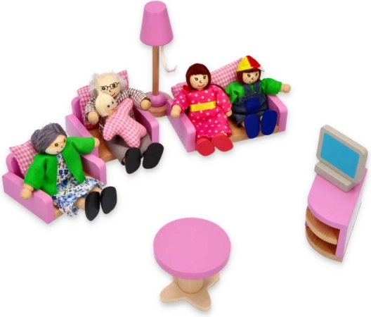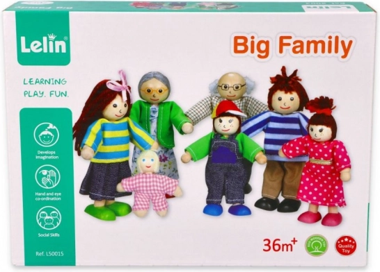 Ši kruopščiai pagaminta šeimyna yra idealus bet kurio lėlių namelio papildymas. Iš masyvinės medienos pagamintos figūrėlės su spalvingais tekstilės drabužiais yra malonios liesti, saugios ir patvarios kasdieniams žaidimams. Dėl skirtingų dydžių (tėvai, vaikai, kūdikis) vaikai lengvai kuria savo šeimos gyvenimo istorijas.