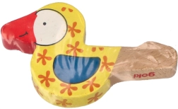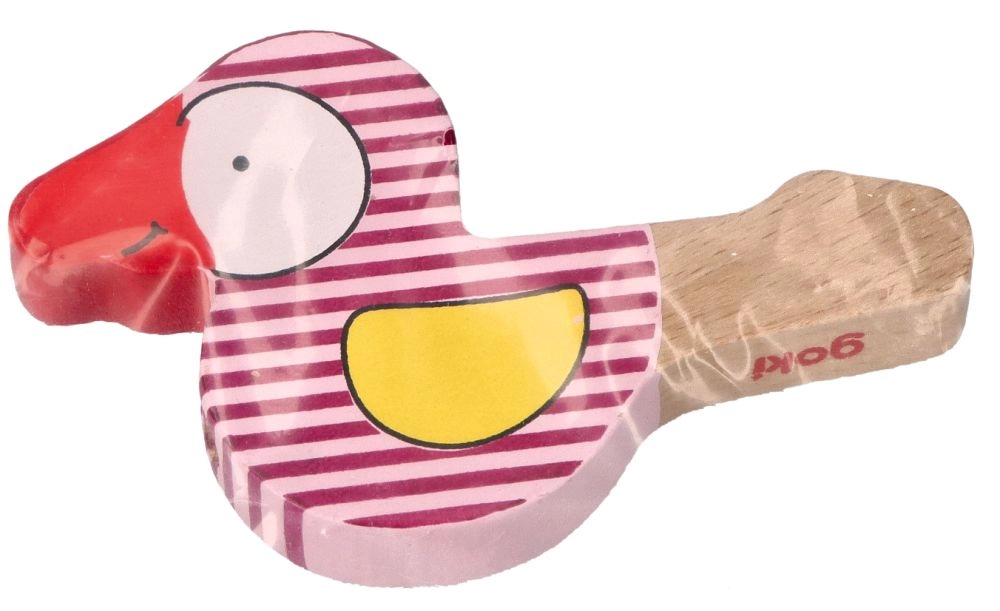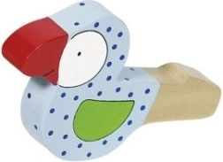 Švilpukas sukurtas paukštelio formos su ryškia spalvų palete, kad patrauktų vaikų dėmesį ir susidomėjimą.