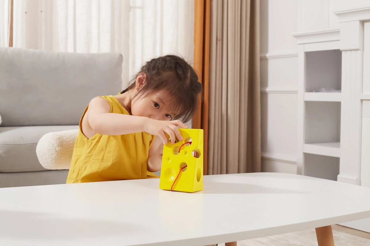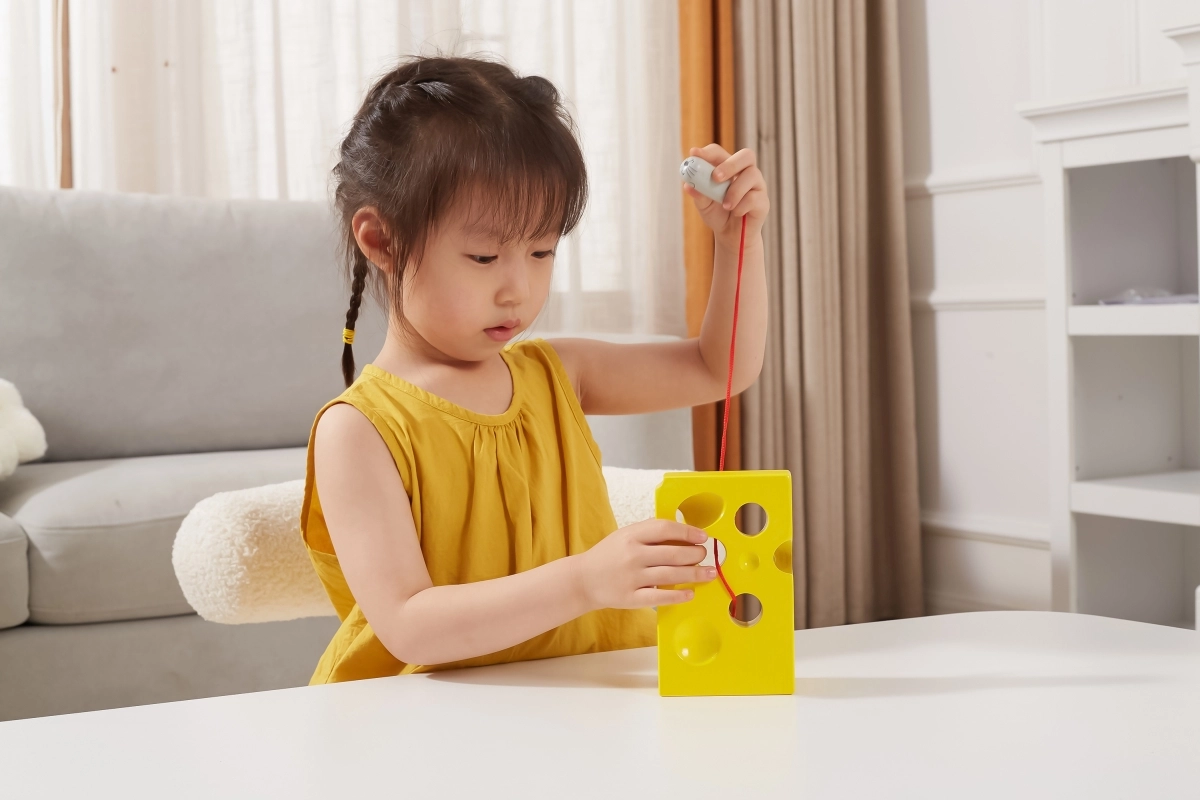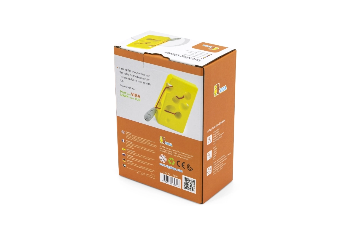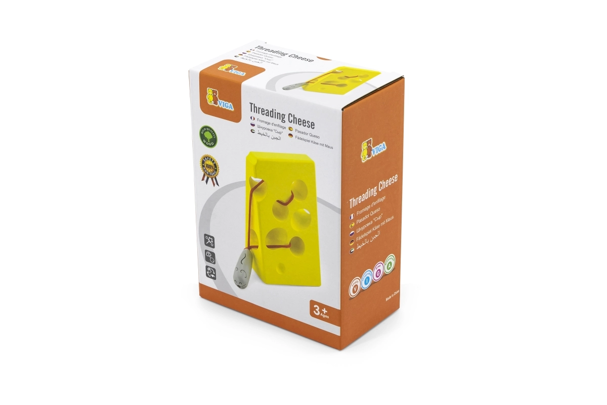 Smagus sūrio formos vėrimo žaislas su pritvirtinta virvele ir miela pelyte lavina smulkiąją motoriką, akių–rankų koordinaciją ir kantrybę. Ideali didaktinė priemonė vaikams nuo 3 metų, siūlanti kūrybišką vėrimą ir tylų, prasmingą žaidimą namuose ir kelionėje.