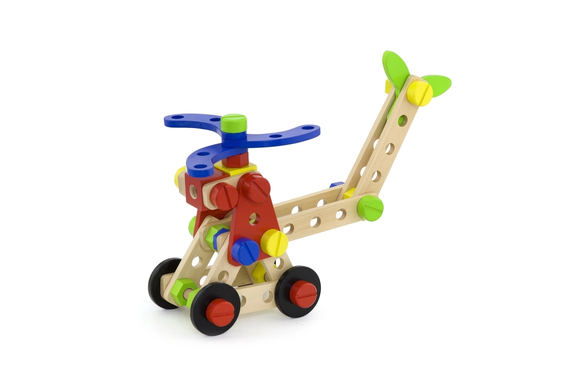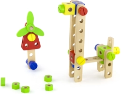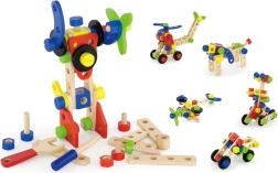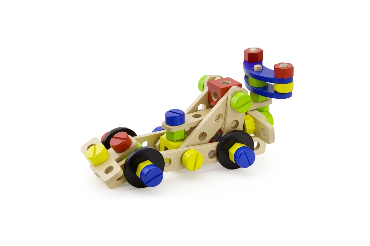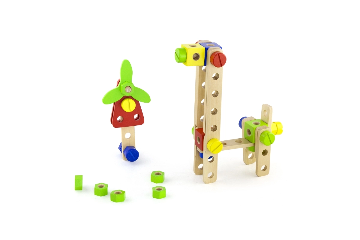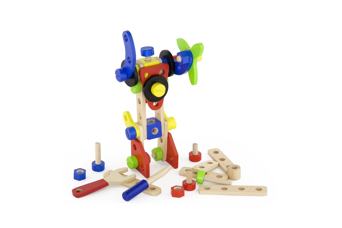 Šis universalus medinis konstravimo rinkinys suteikia vaikams begalines kūrimo galimybes – nuo vežimėlių ir gyvūnėlių iki sraigtasparnio ar roboto. Dėl tvirtų medinių detalių, varžtų ir jungčių vaikai lavina akių–rankų koordinaciją ir susipažįsta su konstrukcinio mąstymo pagrindais.