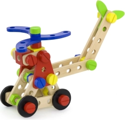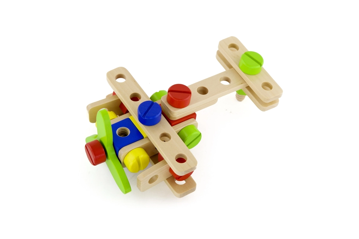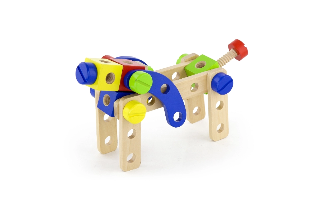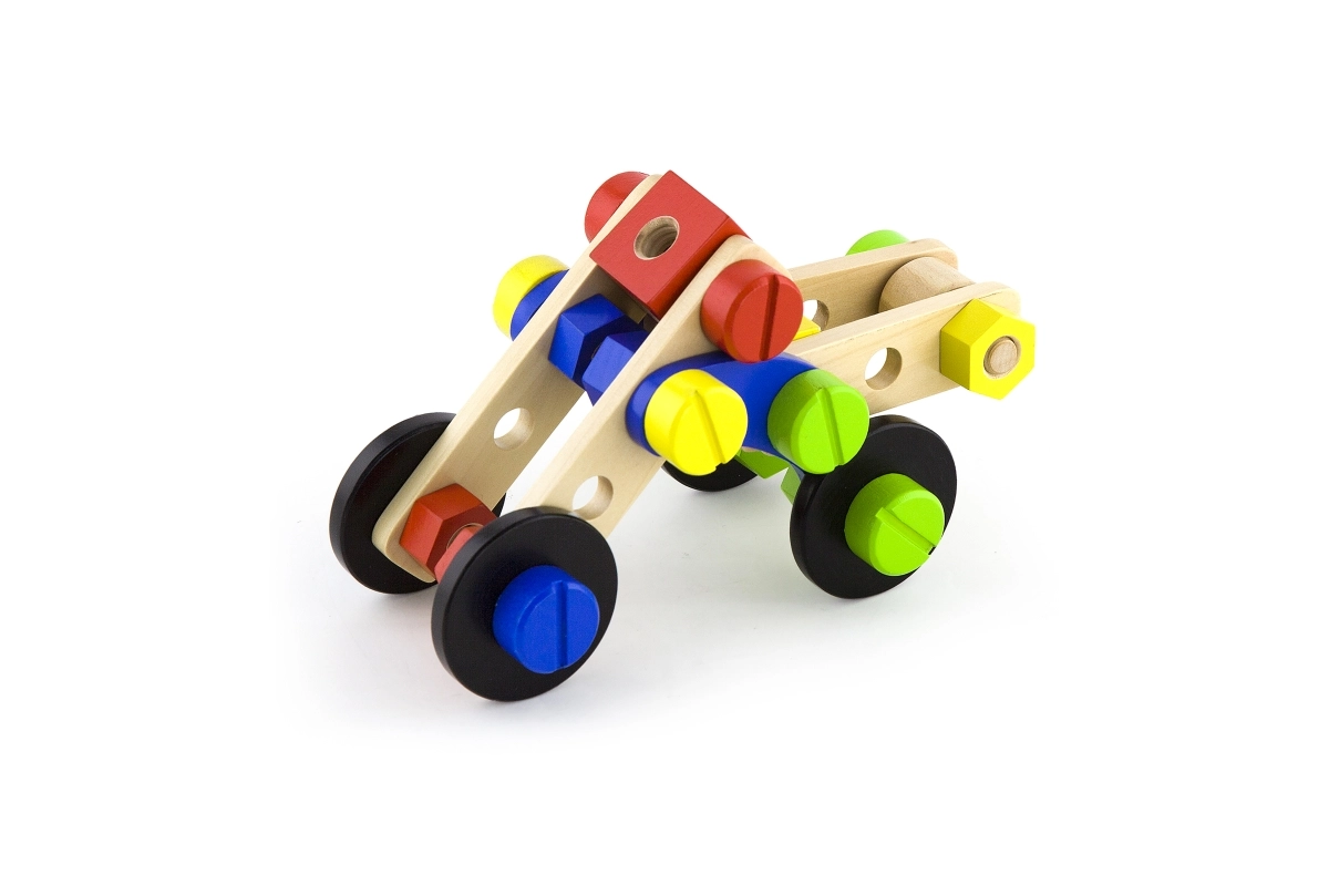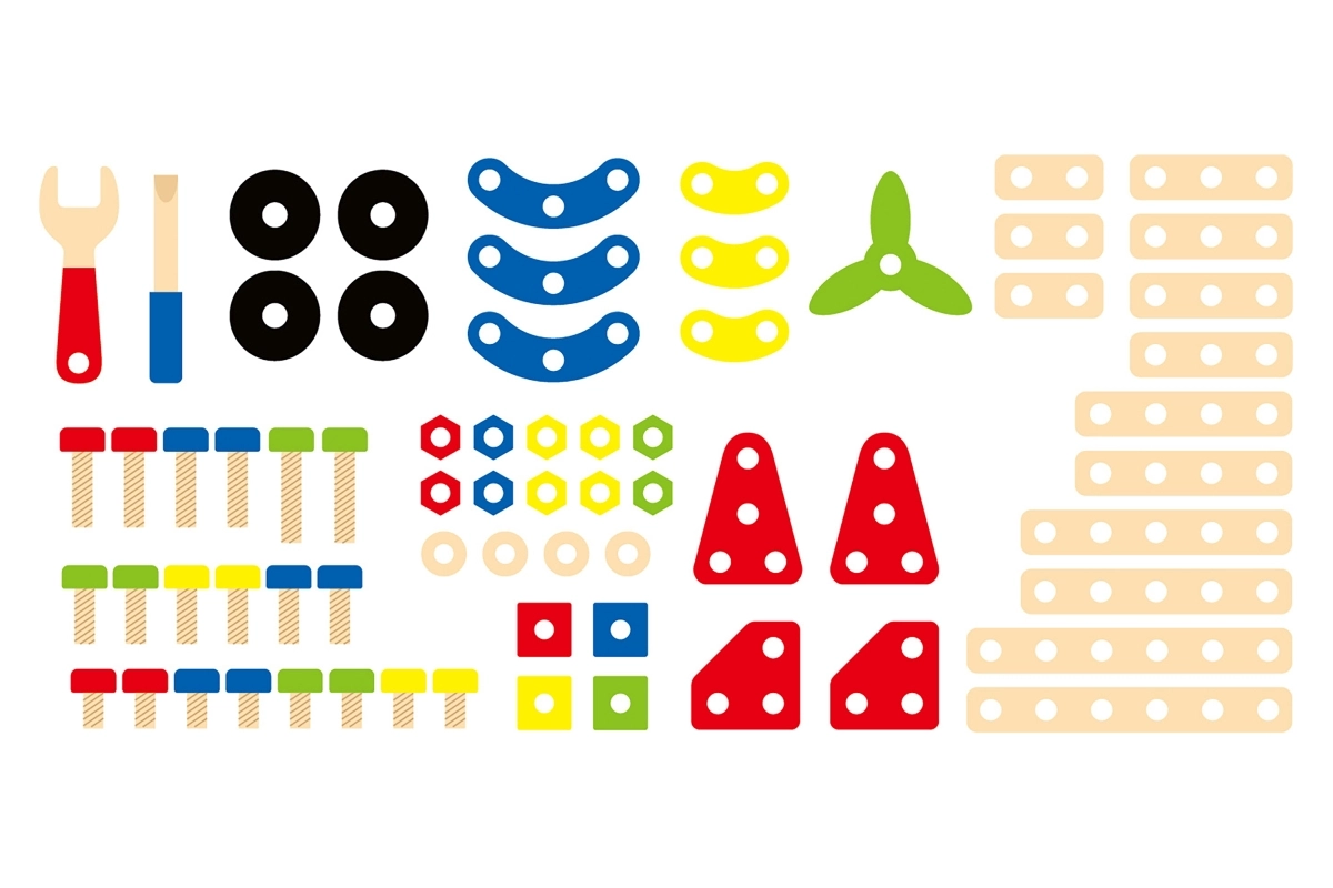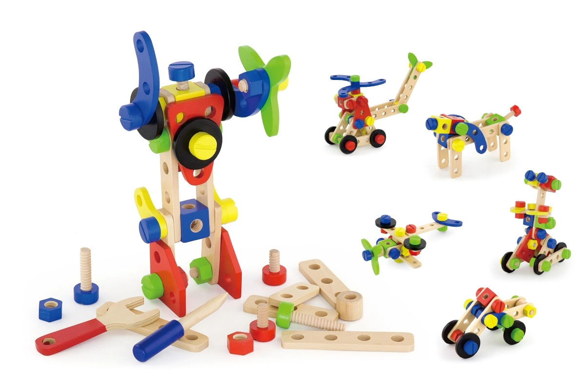 Šis universalus medinis konstravimo rinkinys suteikia vaikams begalines kūrimo galimybes – nuo vežimėlių ir gyvūnėlių iki sraigtasparnio ar roboto. Dėl tvirtų medinių detalių, varžtų ir jungčių vaikai lavina akių–rankų koordinaciją ir susipažįsta su konstrukcinio mąstymo pagrindais.