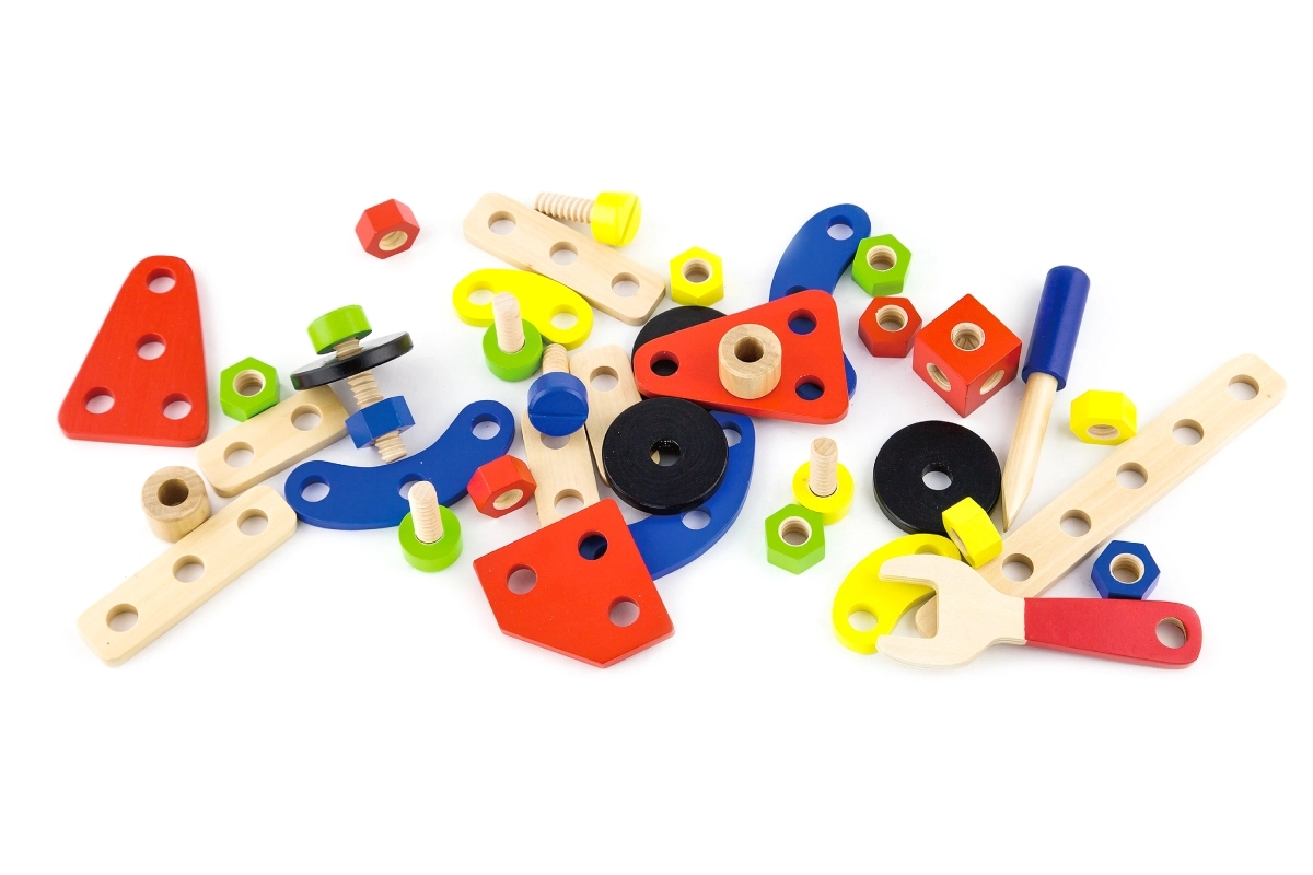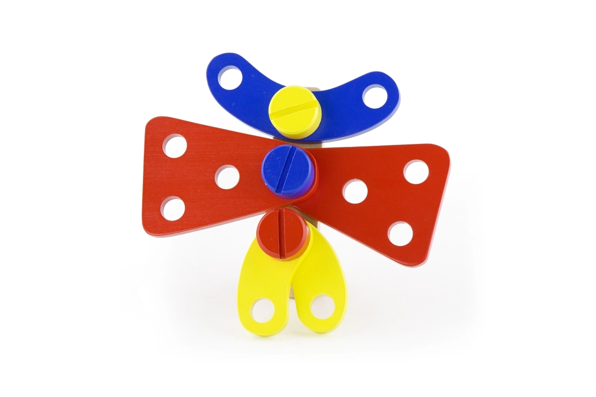 Platus varžtų, veržlių, plokštelių ir ratukų pasirinkimas leidžia sukurti dešimtis modelių – nuo gyvūnėlių iki vežimėlių ir sraigtasparnių. Idealu fantazijai ir kantrybei ugdyti.