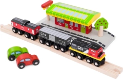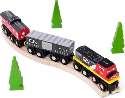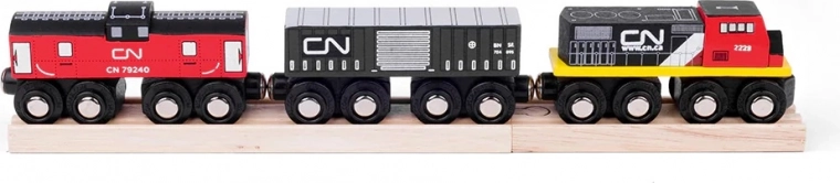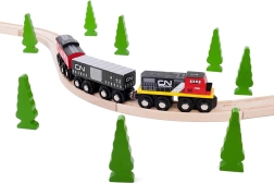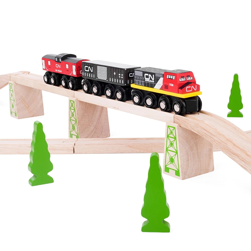 Medinė CN traukinių trasa suteikia linksmų ir kūrybiškų akimirkų jūsų vaikams. Rinkinyje yra krovininis traukinys ir bėgiai, kuriuos vaikai gali lengvai surinkti ir plėsti naudodami papildomus rinkinius. Šis žaislas: