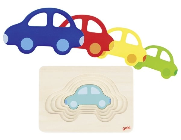 Atraskite linksmą ir lavinančią priemonę patiems mažiausiems: daugiasluoksnę medinę dėlionę automobilio formos iš GOKI. Vaikai žaisdami lavina smulkiąją motoriką, spalvų atpažinimą ir dydžių suvokimą. Tvirta pagrindo lenta su kraštine užtikrina stabilų dėliojimą, o kiekvienas automobiliukas tiksliai įsistato į savo sluoksnį.