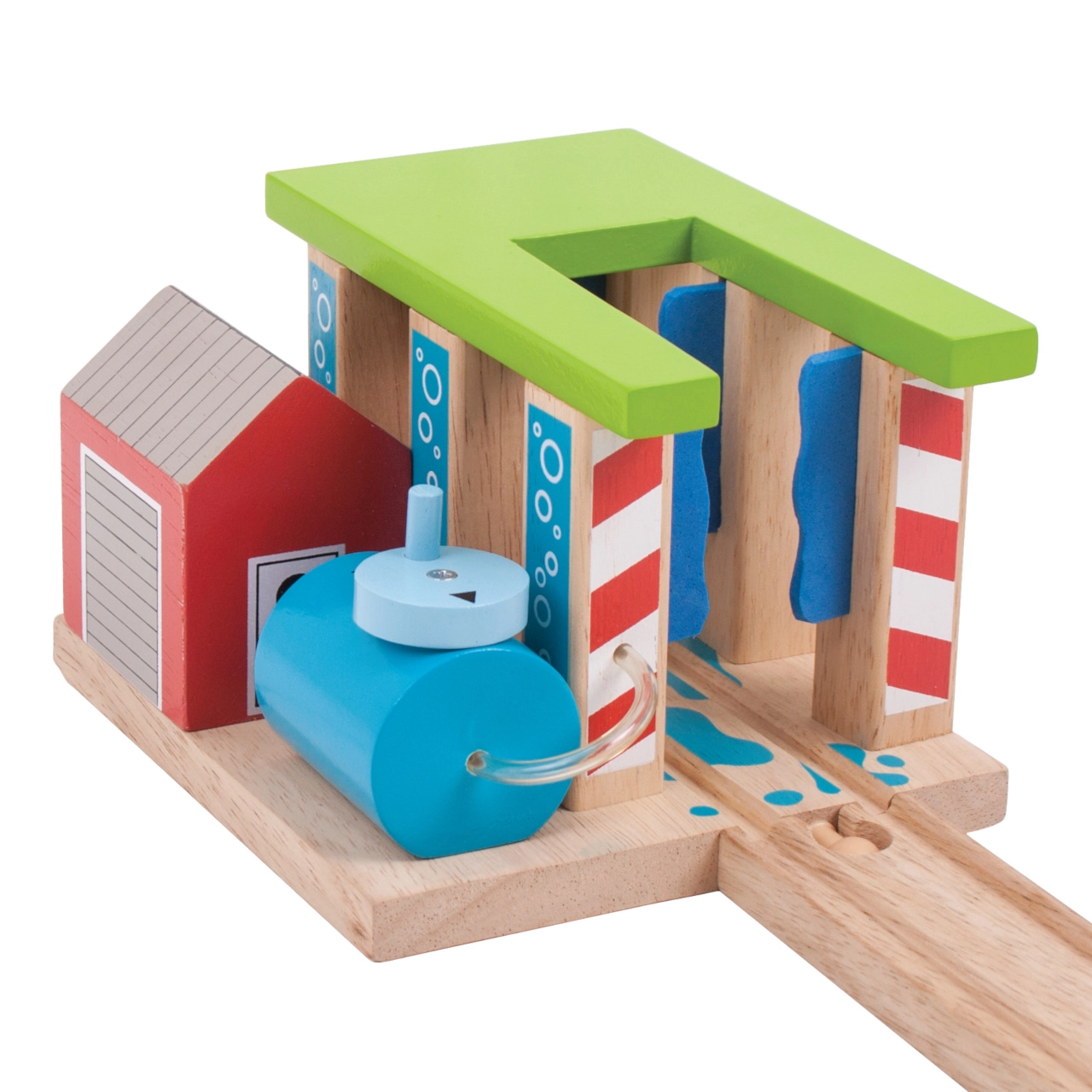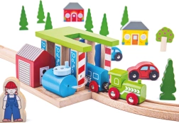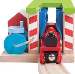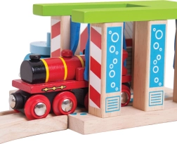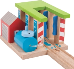 Praturtinkite savo medinę geležinkelio trasą su spalvinga traukinių plovykla BIGJIGS RAIL, kuri suteiks vaikams dar daugiau linksmų akimirkų ir fantazijos. Dėl pasukamų stulpų su šepečiais mažieji mašinistai gali nuspręsti, ar traukinys tiesiog pravažiuos, ar patirs tikrą „plovimo“ įspūdį. Pagaminta iš kokybiškos ir atsakingai gautos medienos, suderinama su dauguma medinių geležinkelio rinkinių rinkoje.