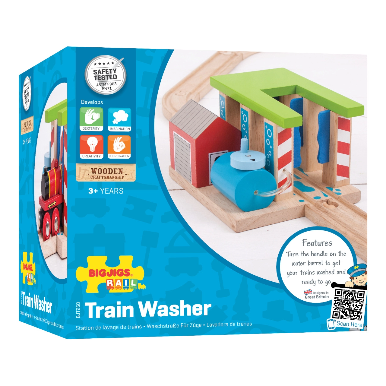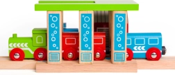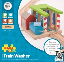Ši medinė traukinių plovykla BIGJIGS RAIL yra idealus priedas bet kuriai vaikų geležinkelio trasai. Dėl pasukamų plovimo stulpų galima lengvai keisti pravažiavimo būdą ir taip skatinti kūrybišką žaidimą bei lavinti smulkiąją motoriką. Tvirta konstrukcija ir ryškios spalvos patraukia dėmesį iš pirmo žvilgsnio ir kviečia kurti naujus žaidimo scenarijus.
