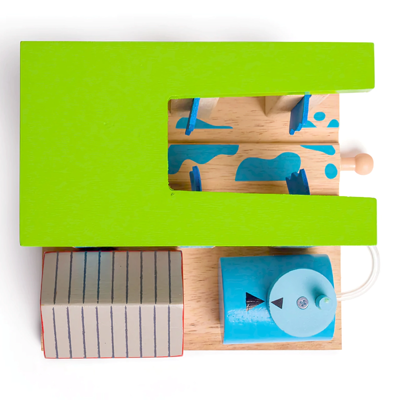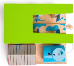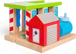 Nustatykite stulpus taip, kad traukinys tiesiog pravažiuotų arba kad jį „nuplautų“ šepečiai. Vaikams patiks keisti scenarijus ir lavinti smulkiąją motoriką.