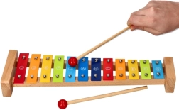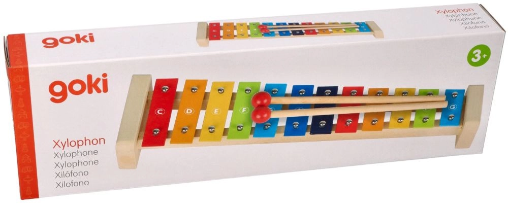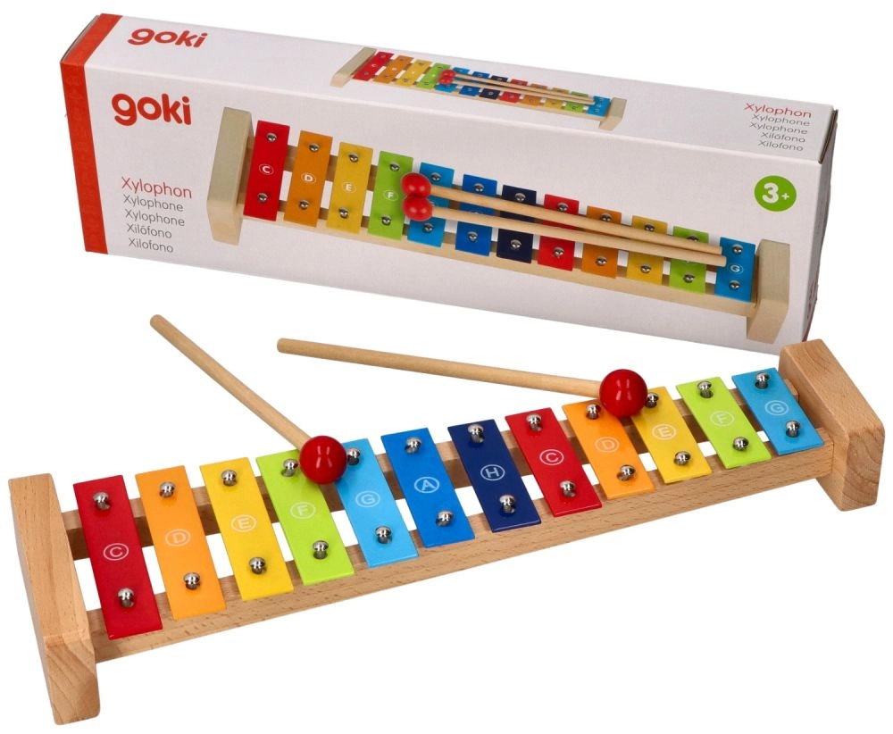 Spalvingas Goki ksilofonas su dainynu Vaivorykštė – puikus pasirinkimas pirmai pažinčiai su muzika. Tvirta medinė konstrukcija kartu su metaliniais klavišais užtikrina malonų skambesį ir ilgą naudojimą. Dėl natų pavadinimų ant klavišų ir spalvinio vedimo dainyne vaikai lengvai supras ryšį tarp spalvų, tonų ir paprastų melodijų.