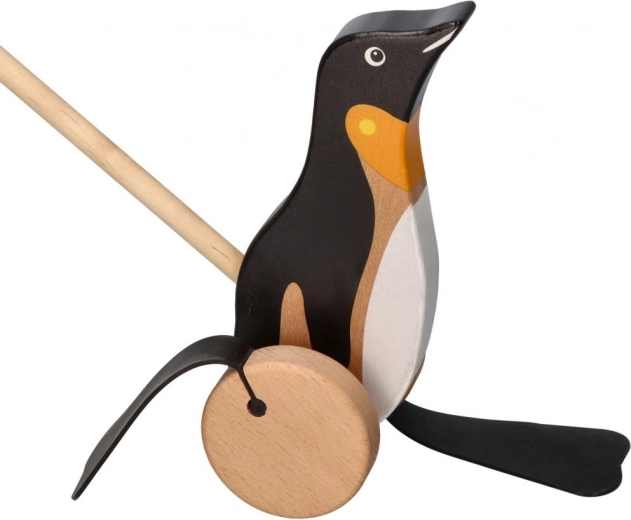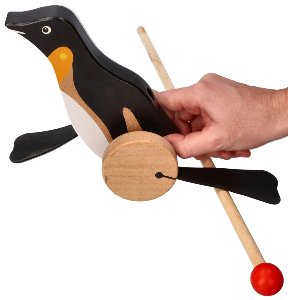 Medinis tempiamas žaislas pingvino formos teikia džiaugsmą ir žaidimo būdu lavina vaikus.