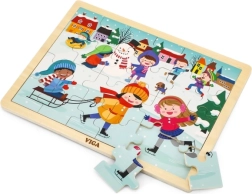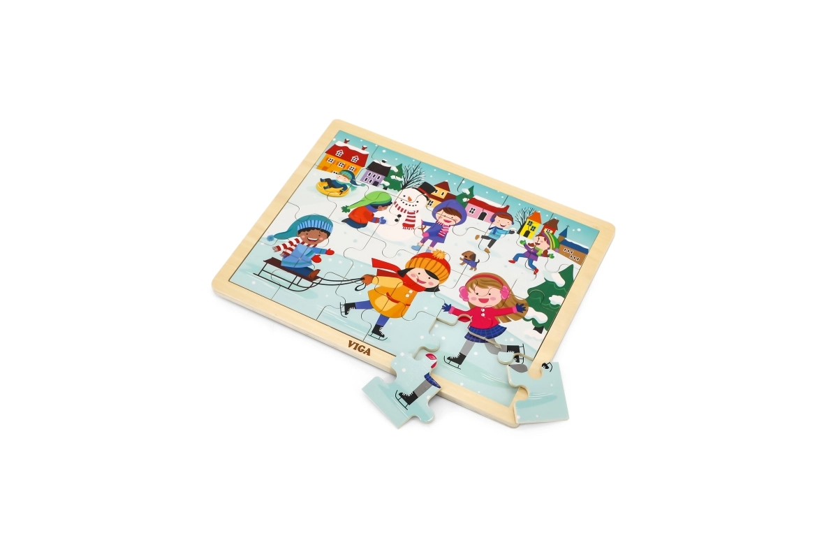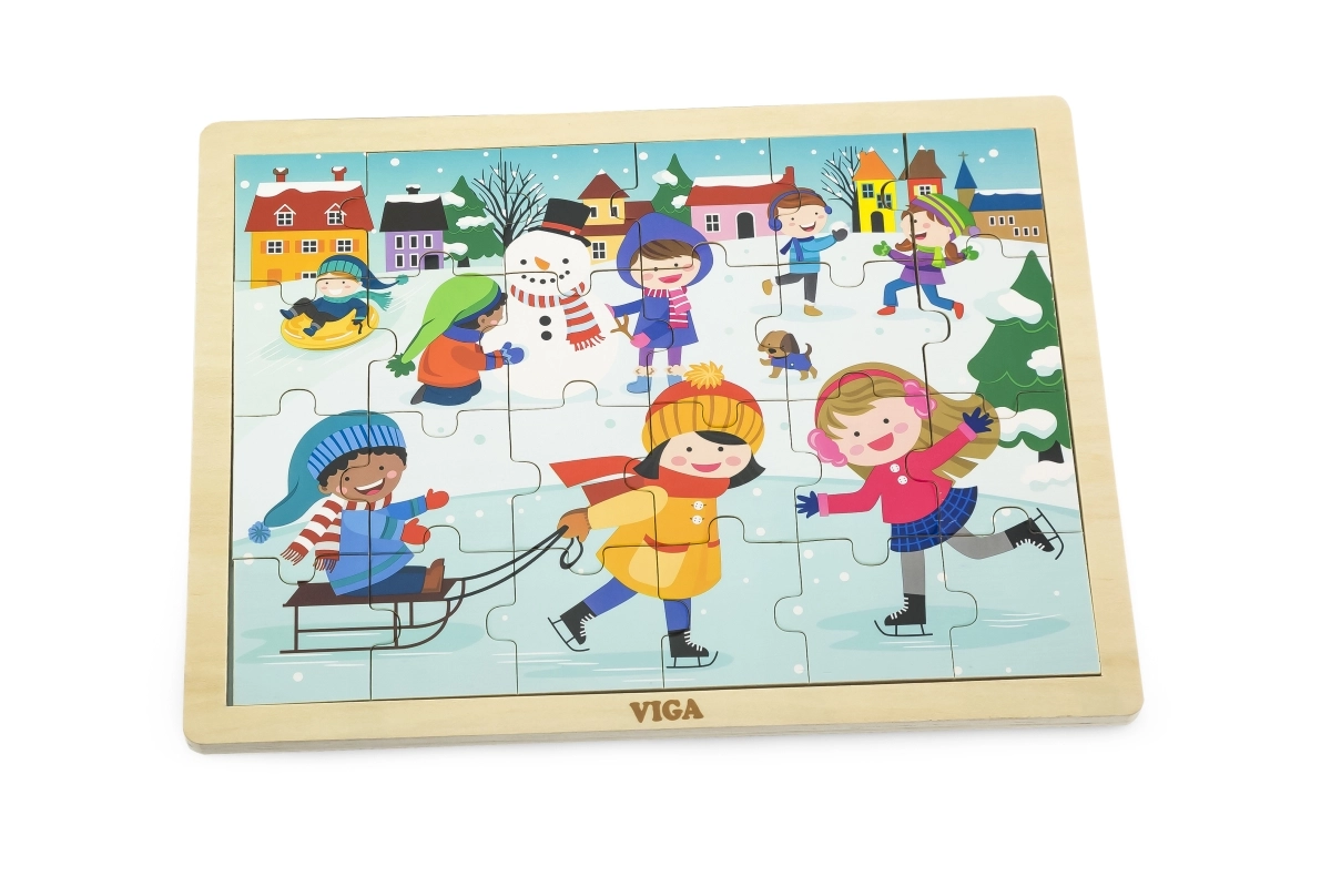 Ši medinė dėlionė su žiemos paveikslu – puikus pasirinkimas vaikams nuo 24 mėnesių. Kiekvienos dalies dydis pritaikytas vaikiškoms rankutėms, o tvirta konstrukcija užtikrina ilgaamžiškumą. Su 24 dalimis vaikai lavins susikaupimą ir džiaugsis užbaigtu paveikslėliu.