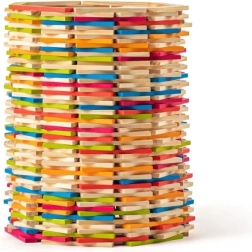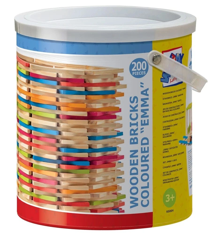 Šiame rinkinyje yra 200 kokybiškų medinių kaladėlių, kurių matmenys 10 × 1,8 × 0,6 cm, sukurtų lengvam dėliojimui į bokštus, tiltus, gyvūnus ir fantazinius statinius. Glotnus paviršius ir tikslūs matmenys užtikrina stabilumą ir patogų suėmimą mažoms vaikų rankoms.