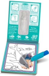 Vandens piešimo knyga sukurta taip, kad suteiktų pakartotinę pramogą. Tereikia pripildyti rašiklį vandeniu ir stebėti, kaip piešiniai atgyja palietus vandeniu. Išdžiūvus vaikai gali pradėti iš naujo.