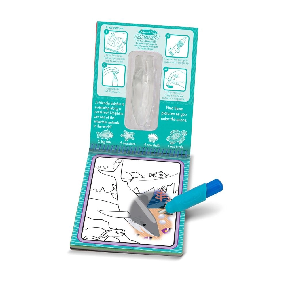 Vandens piešimo knyga „Povandeninis pasaulis“ siūlo interaktyvią patirtį su jūros gyvūnų iliustracijomis, kur kiekvienas puslapis suteikia galimybę atrasti spalvas naudojant vandenį. Mėgaukitės netvarkos nekeliančia pramoga, kuri padeda jūsų vaikui lavinti smulkiąją motoriką ir vikrumą. Toks piešimo būdas skatina kūrybiškumą ir erdvinį suvokimą.
