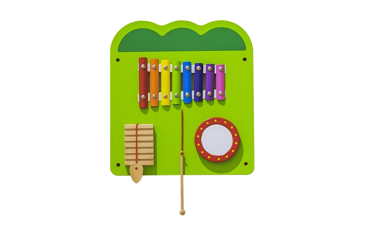 Spalvotas ksilofonas, būgnelis ir grioveliuota plokštuma žadina smalsumą ir supažindina vaikus su ritmu bei garsais – pirmieji žingsniai į muzikos pasaulį.